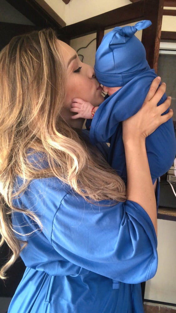 Bata para mama unitalla, medida de largo 106 cm. Vienen amplias y se ajustan al cuerpo al cruzarlas adaptándose a cualquier talla.