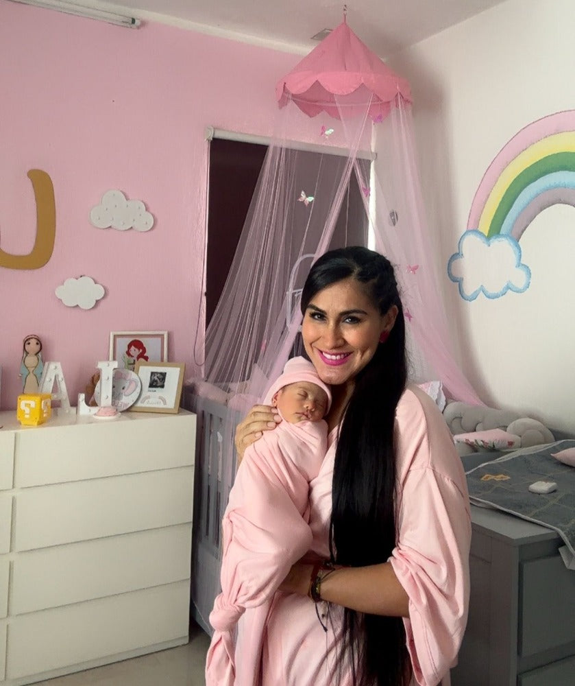 Bata para mama unitalla, medida de largo 106 cm. Vienen amplias y se ajustan al cuerpo al cruzarlas adaptándose a cualquier talla.